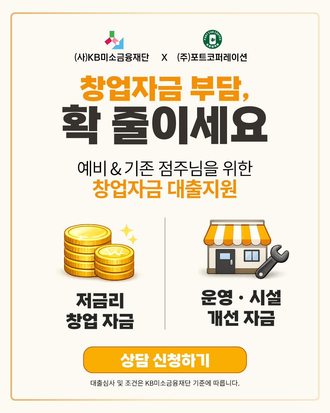 포트캔커피는 가맹점과 함께 성장하는 브랜드입니다.